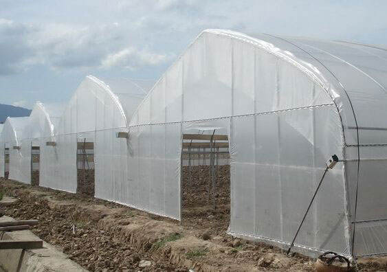 4、采用吸濕性良好的保溫幕材料。透濕和吸濕性良好的保溫幕材料,如無紡布能夠阻止棚內(nèi)表面結(jié)露,并可防止露水落到植株上,從而降低連棟溫室空氣濕度。